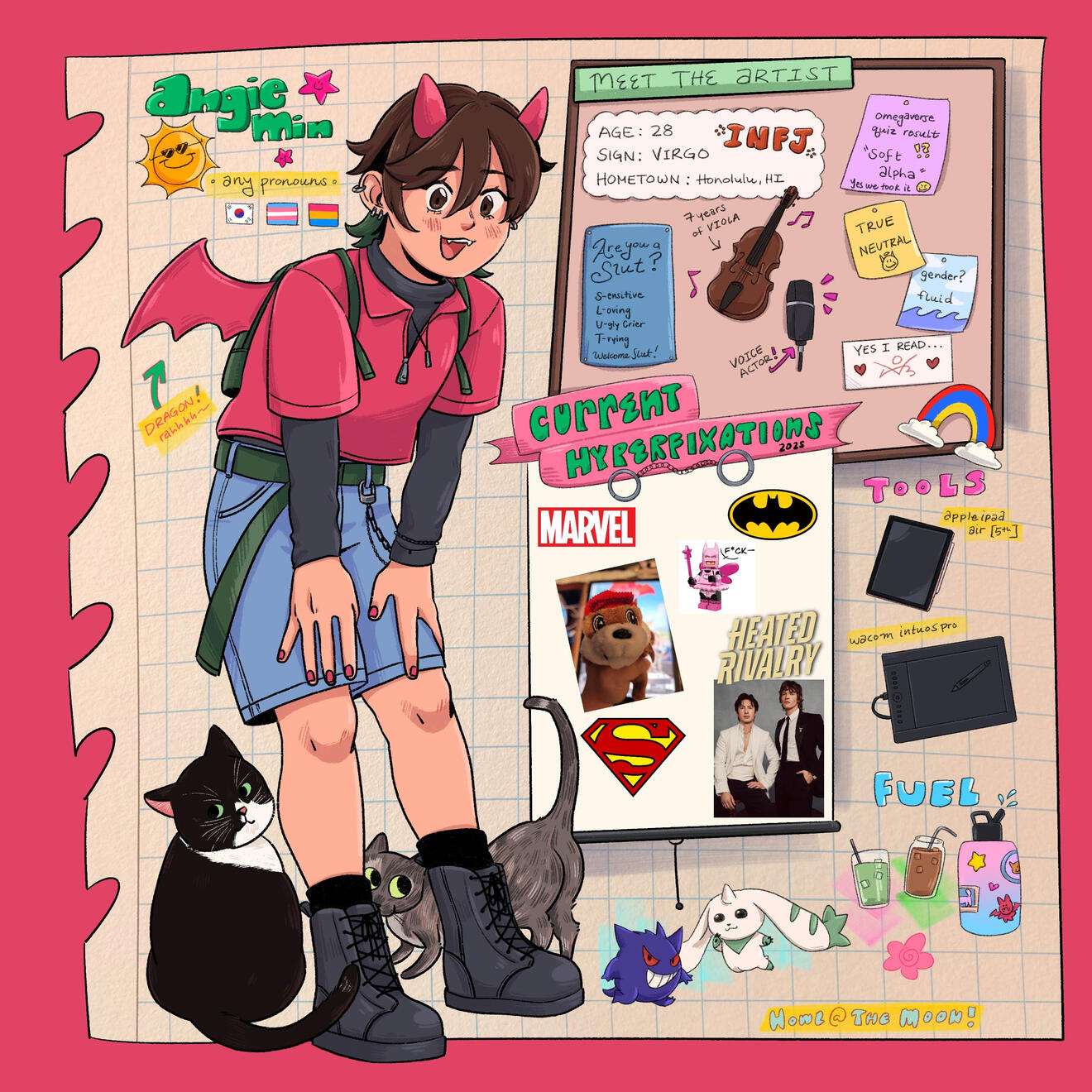 "Angie Min is an amazing artist and voice actor. They've worked on multiple projects with me, including All Ages of Geek and I Married a Monster on a Hill. Angie is the voice behind our mascot Kasai at All Ages of Geek and has done fantastic artwork for our website, making our brand really pop. They're super easy to work with, very detail-oriented, and just an all-around great person.For I Married a Monster on a Hill, Angie voices Iris and perfectly captures her peppy personality. They've also created awesome promotional artwork for the series. Angie is a fantastic addition to any team! Highly recommend."