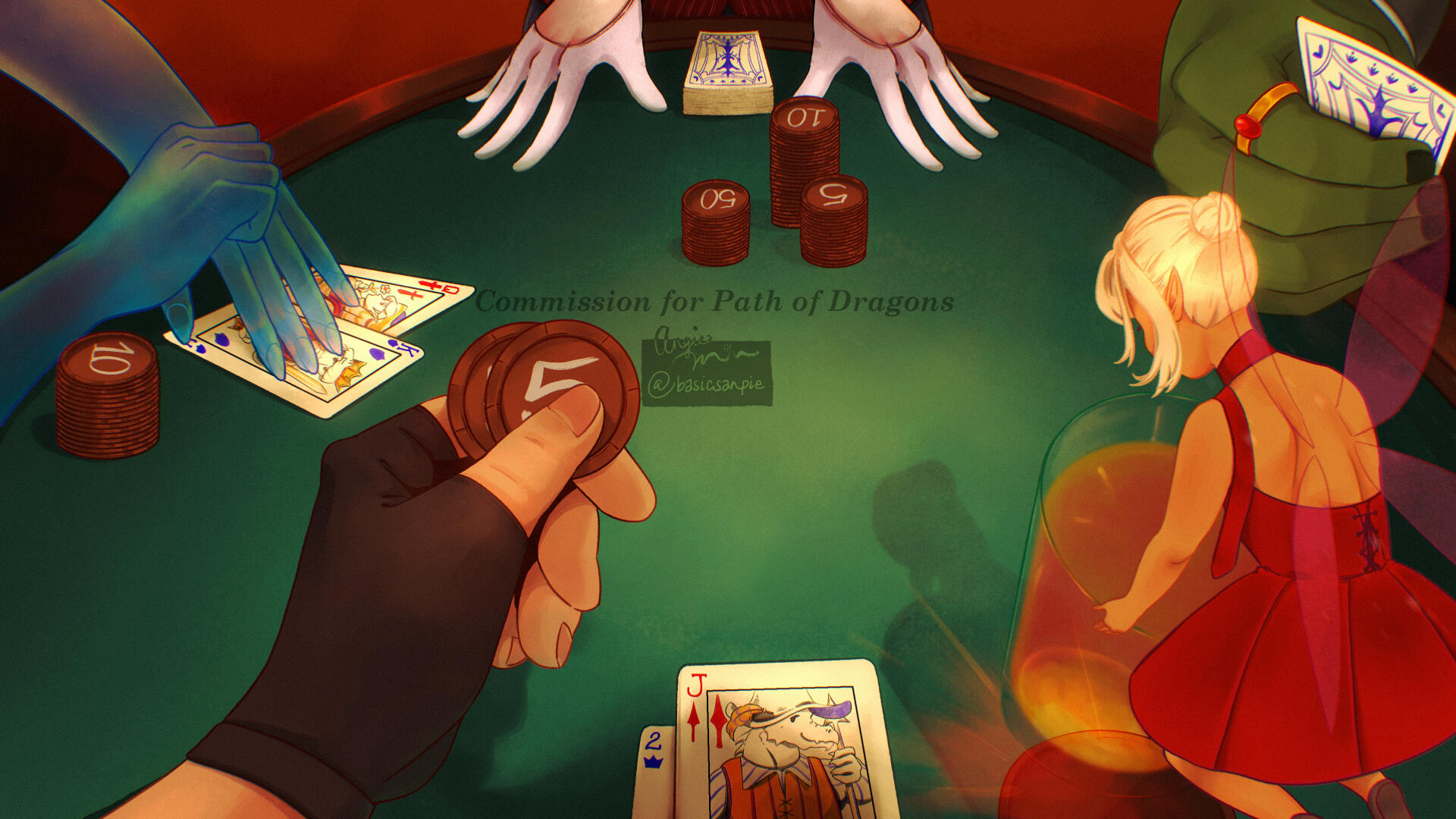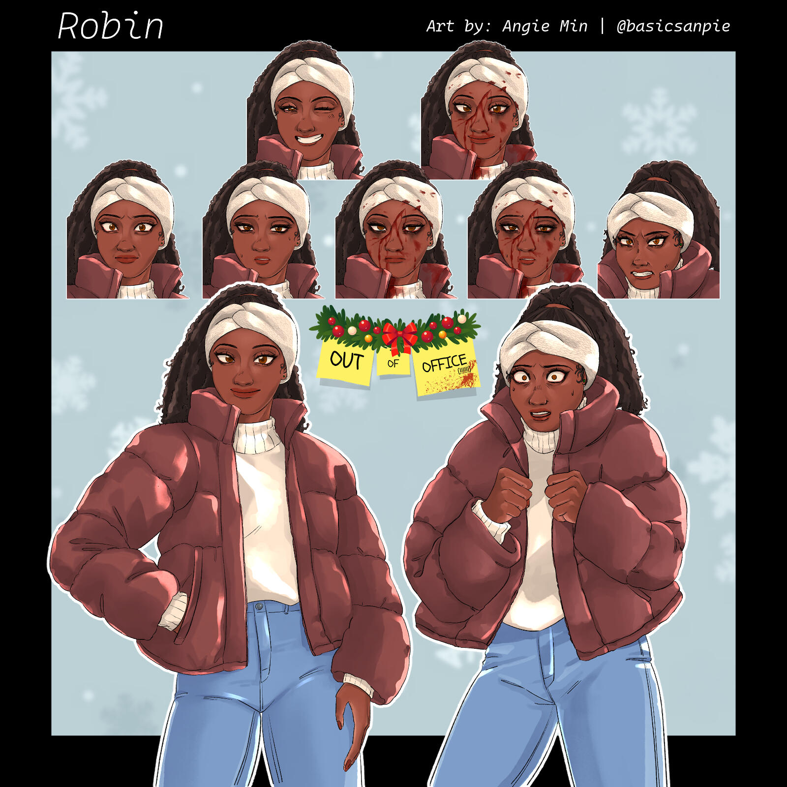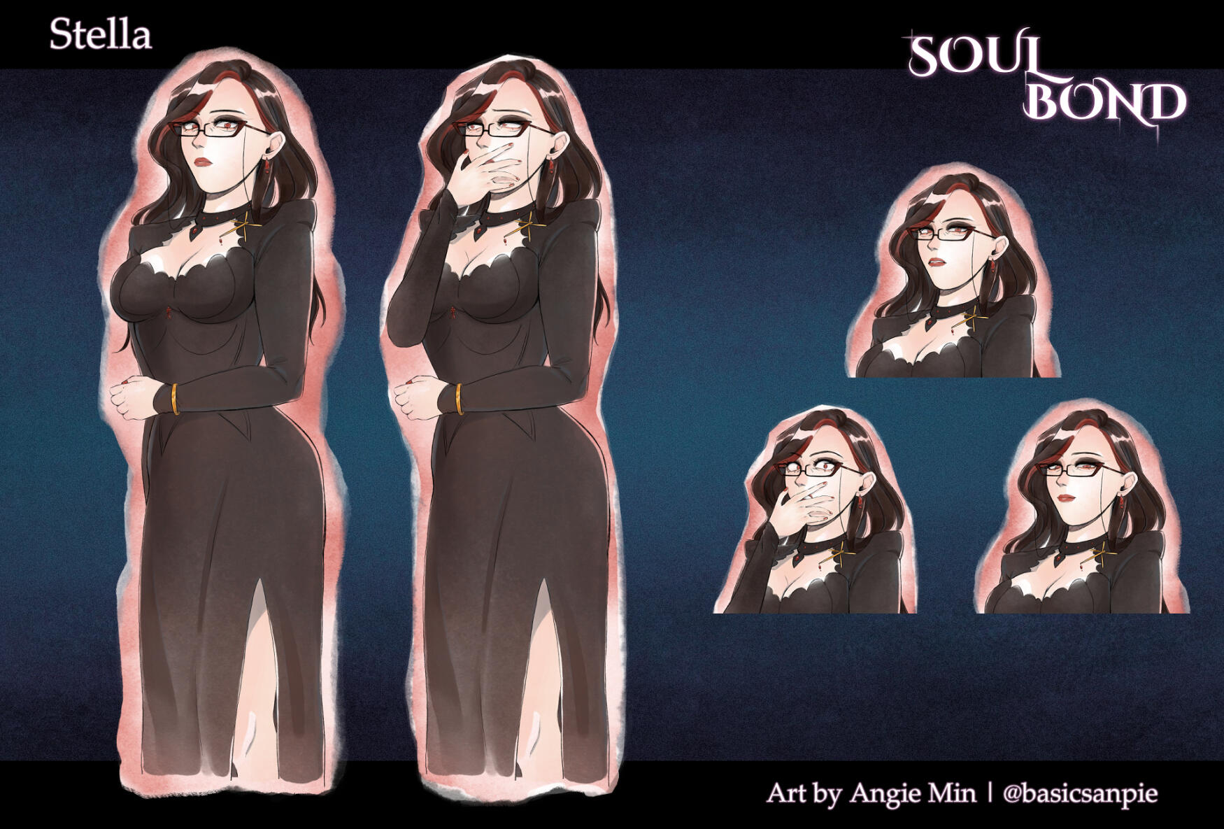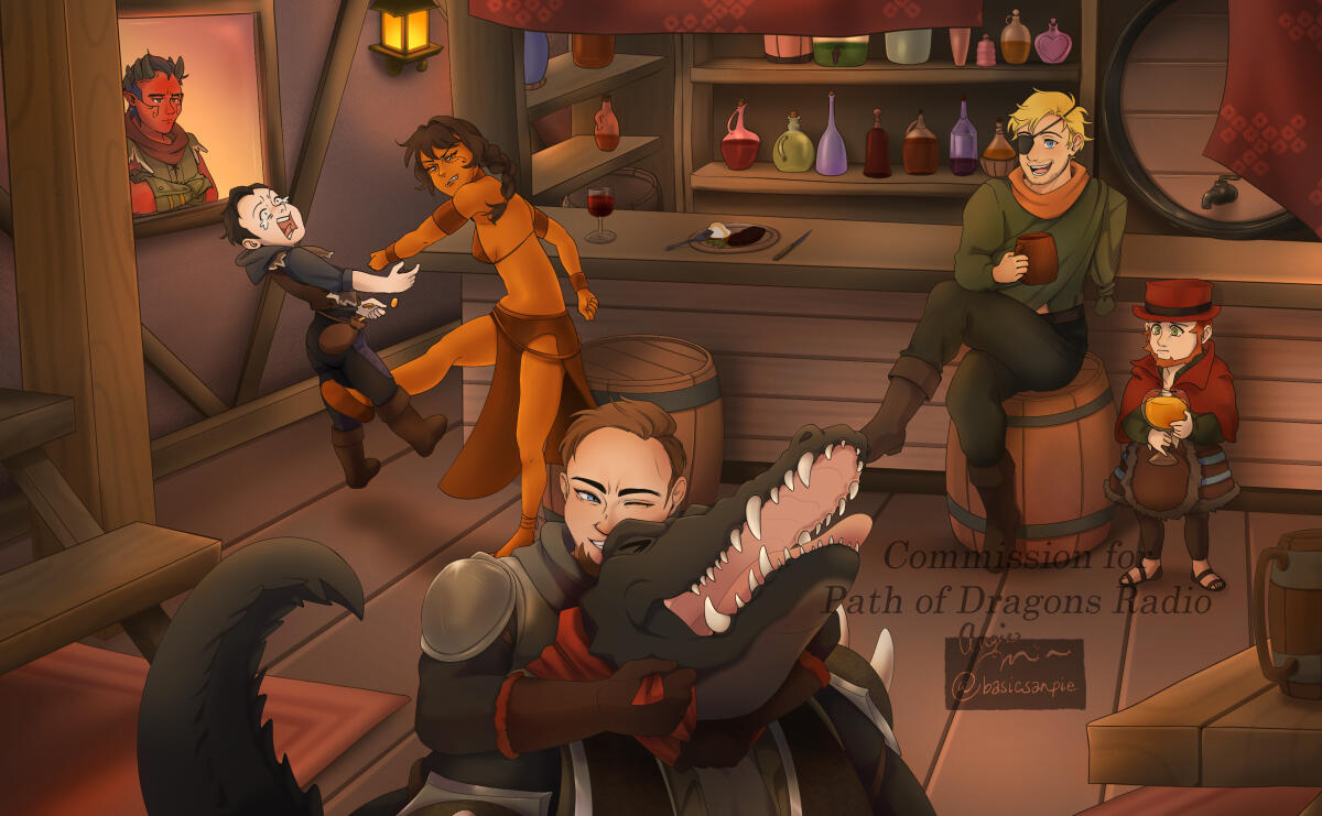 "Angie Min has worked on two art commissions for my and my wife's audio drama and I couldn't be happier with the results. Their ability to perfectly capture the spirits of the characters from just a few descriptions is phenomenal. Their exceptional attention to detail and artistic flair to capture little quirks, be it a small grin or subtle posture, is what brings me back for more. They're also incredible to work with, very accepting of notes and accommodating as well.Trusting someone with one's work can be a little nerve-wracking, but I can think of no other artist to handle our lovely cast of ne'er-do-wells than Angie Min."